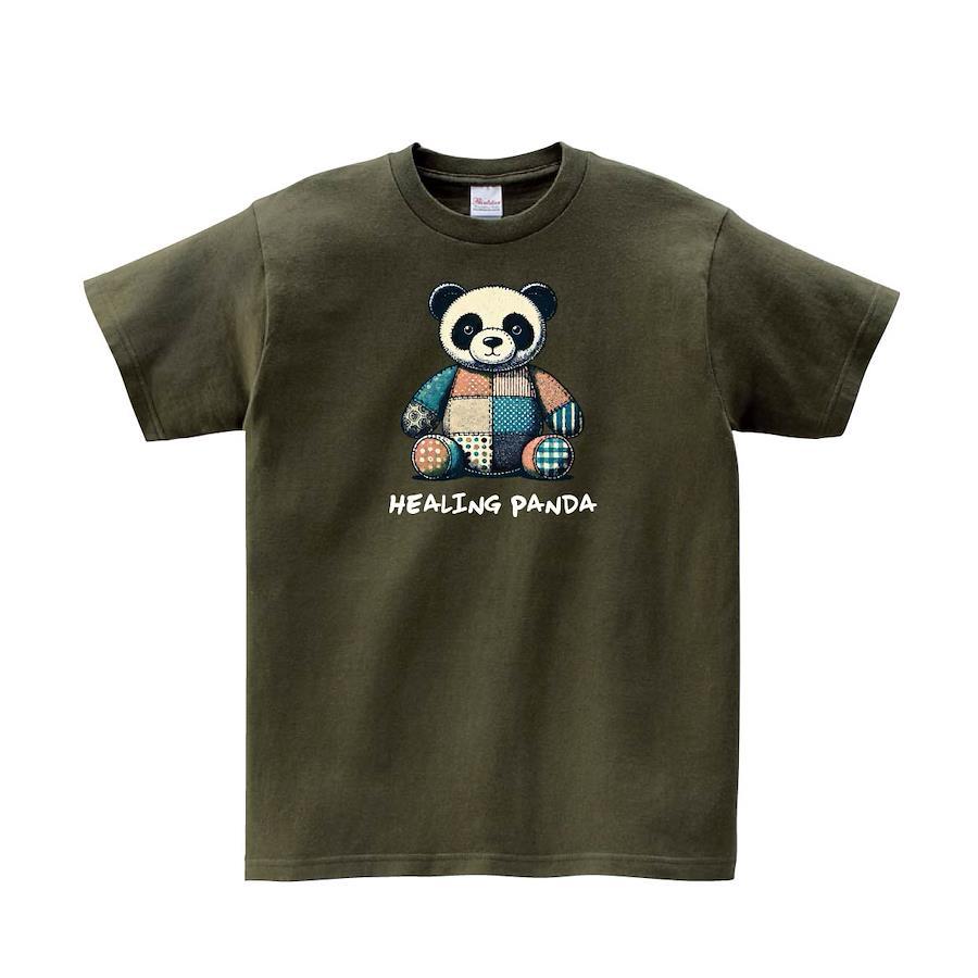 パッチワークのパンダさん。レトロ感のあるかわいいイラストデザインTシャツです。※画像ははめ込み画像となり、実際とは多少異なりますので予めご了承ください。 ※サイズ表をよくご確認の上ご購入ください。 ※受注生産となるため、返品、交換はご遠慮ください。