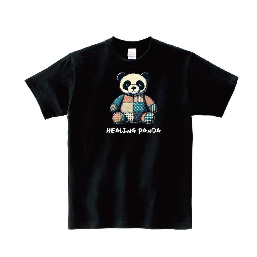 パッチワークのパンダさん。レトロ感のあるかわいいイラストデザインTシャツです。※画像ははめ込み画像となり、実際とは多少異なりますので予めご了承ください。 ※サイズ表をよくご確認の上ご購入ください。 ※受注生産となるため、返品、交換はご遠慮ください。