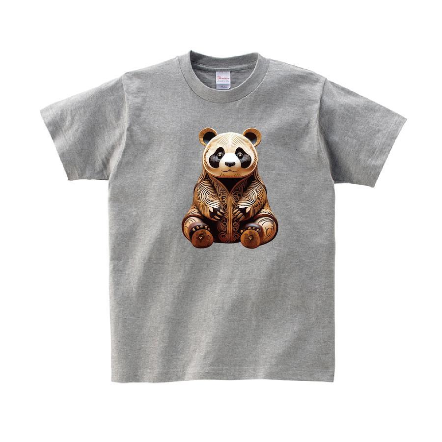 お土産っぽい木彫りのパンダのTシャツです。※画像ははめ込み画像となり、実際とは多少異なりますので予めご了承ください。 ※サイズ表をよくご確認の上ご購入ください。 ※受注生産となるため、返品、交換はご遠慮ください。