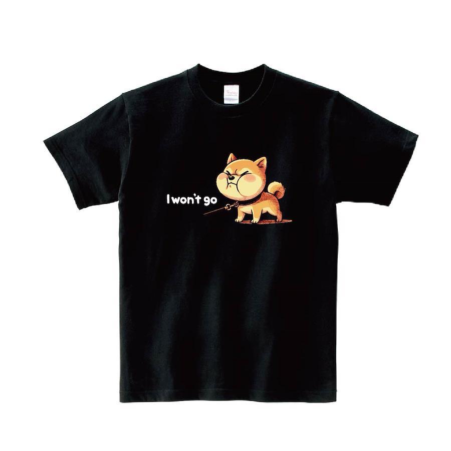 行きたくない。散歩嫌いなシバイヌくんのイラストデザインTシャツです。※画像ははめ込み画像となり、実際とは多少異なりますので予めご了承ください。 ※サイズ表をよくご確認の上ご購入ください。 ※受注生産となるため、返品、交換はご遠慮ください。