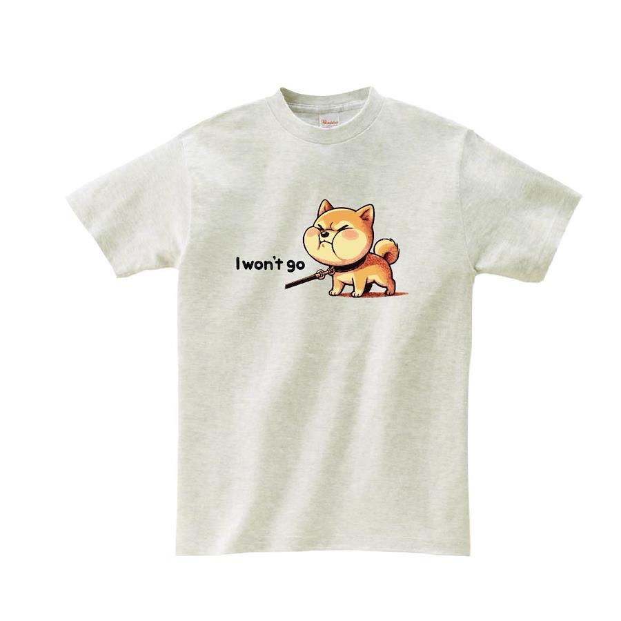 行きたくない。散歩嫌いなシバイヌくんのイラストデザインTシャツです。※画像ははめ込み画像となり、実際とは多少異なりますので予めご了承ください。 ※サイズ表をよくご確認の上ご購入ください。 ※受注生産となるため、返品、交換はご遠慮ください。