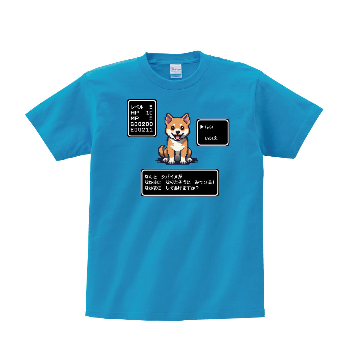 懐かしのレトロゲーム風、柴犬がかわいく仲間のお誘いのおしゃれTシャツです。※画像ははめ込み画像となり、実際とは多少異なりますので予めご了承ください。 ※サイズ表をよくご確認の上ご購入ください。 ※受注生産となるため、返品、交換はご遠慮ください。