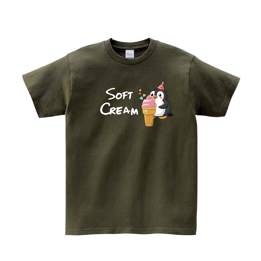 ふんわりいちご味のソフトクリームとペンギンくんのイラストデザインTシャツです。※画像ははめ込み画像となり、実際とは多少異なりますので予めご了承ください。 ※サイズ表をよくご確認の上ご購入ください。 ※受注生産となるため、返品、交換はご遠慮ください。