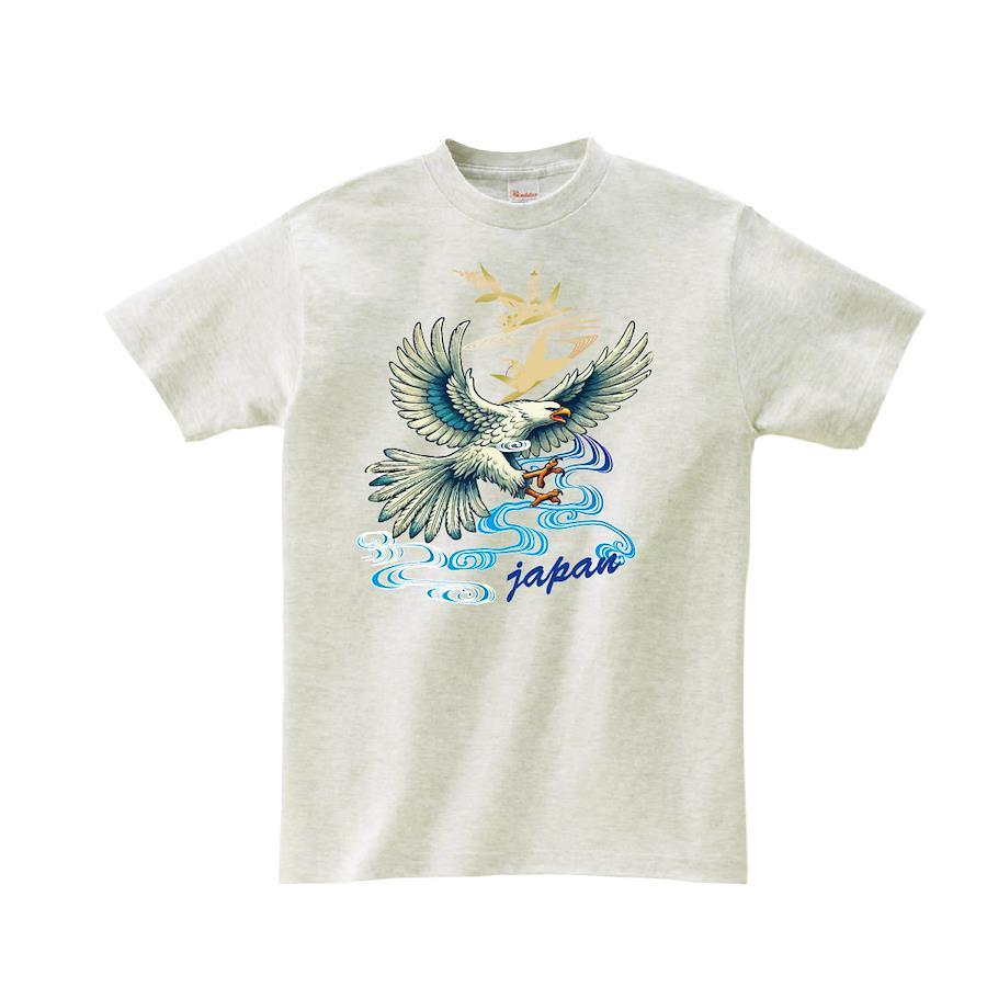 刺繍風な鷲、イーグルを和模様であしらったデザインTシャツです。※画像ははめ込み画像となり、実際とは多少異なりますので予めご了承ください。 ※サイズ表をよくご確認の上ご購入ください。 ※受注生産となるため、返品、交換はご遠慮ください。