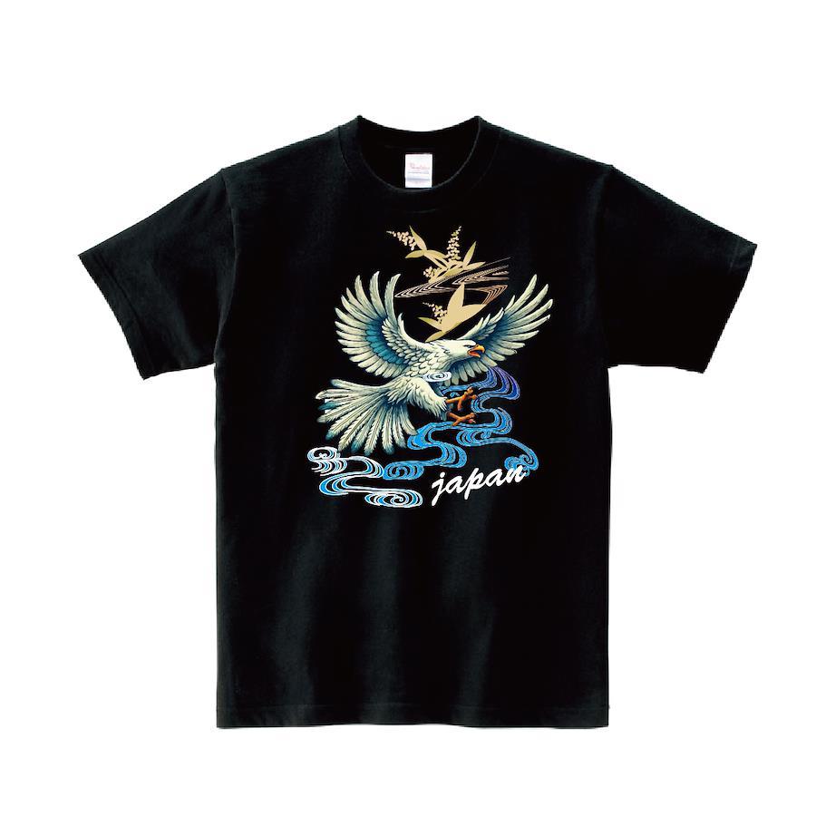 刺繍風な鷲、イーグルを和模様であしらったデザインTシャツです。※画像ははめ込み画像となり、実際とは多少異なりますので予めご了承ください。 ※サイズ表をよくご確認の上ご購入ください。 ※受注生産となるため、返品、交換はご遠慮ください。