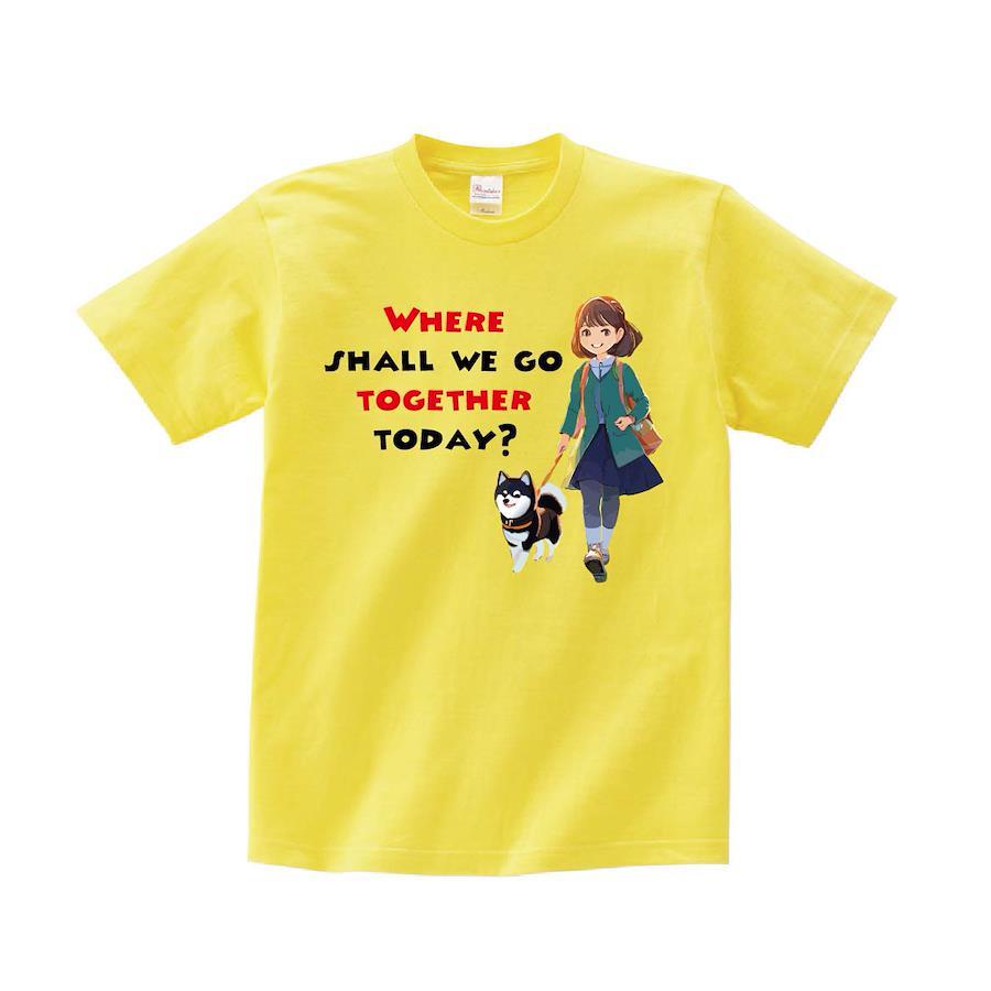 美少女アニメタッチの黒柴犬とのお散歩Tシャツです。※画像ははめ込み画像となり、実際とは多少異なりますので予めご了承ください。 ※サイズ表をよくご確認の上ご購入ください。 ※受注生産となるため、返品、交換はご遠慮ください。