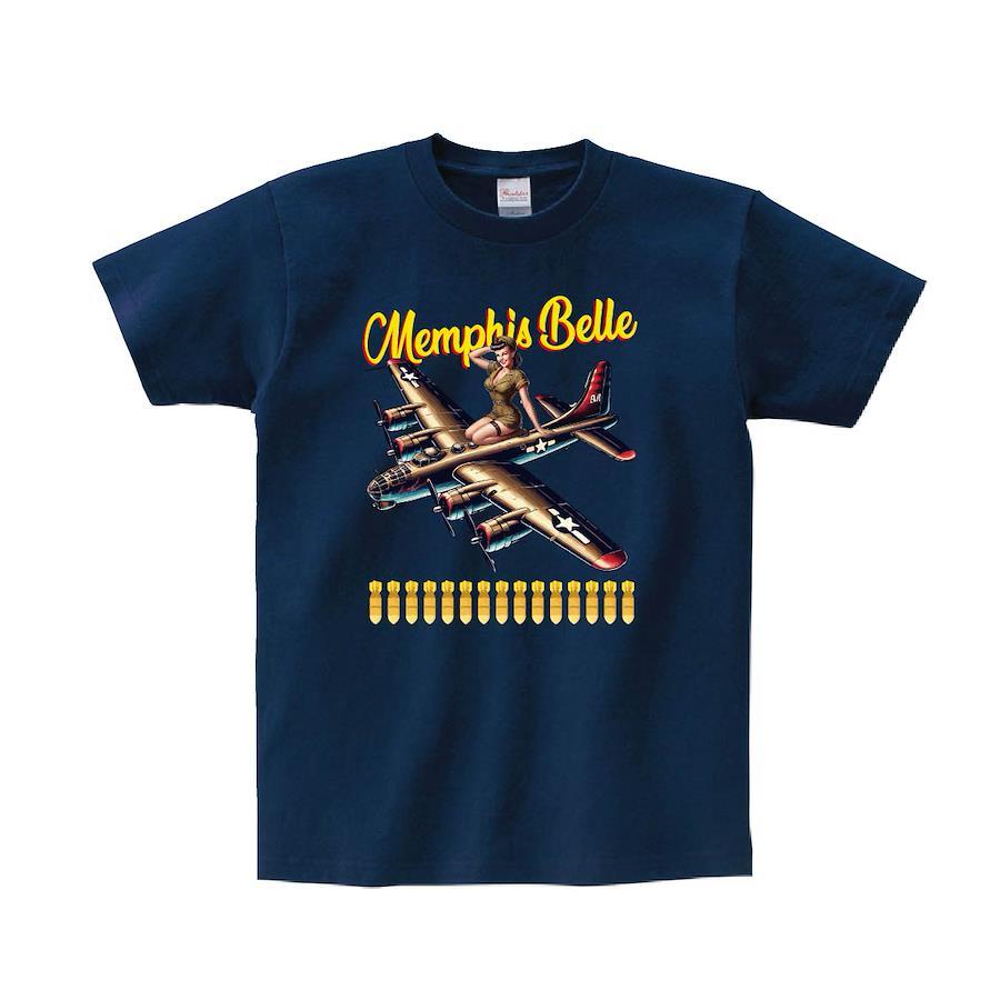 有名な爆撃機、メンフィスベルのビンテージ感のあるデザインTシャツです。※画像ははめ込み画像となり、実際とは多少異なりますので予めご了承ください。 ※サイズ表をよくご確認の上ご購入ください。 ※受注生産となるため、返品、交換はご遠慮ください。