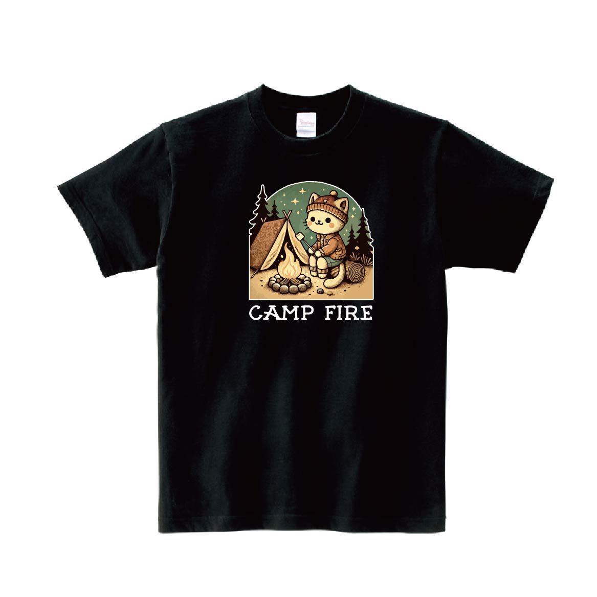 かわいい猫のキャンプのイラストデザインTシャツです。※画像ははめ込み画像となり、実際とは多少異なりますので予めご了承ください。 ※サイズ表をよくご確認の上ご購入ください。 ※受注生産となるため、返品、交換はご遠慮ください。