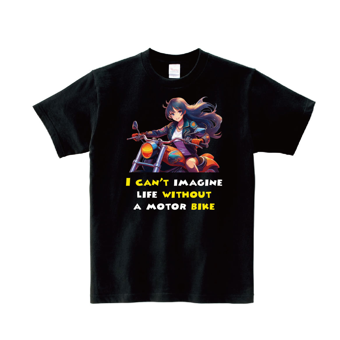 バイク好きな、萌え美少女のTシャツです。※画像ははめ込み画像となり、実際とは多少異なりますので予めご了承ください。 ※サイズ表をよくご確認の上ご購入ください。 ※受注生産となるため、返品、交換はご遠慮ください。