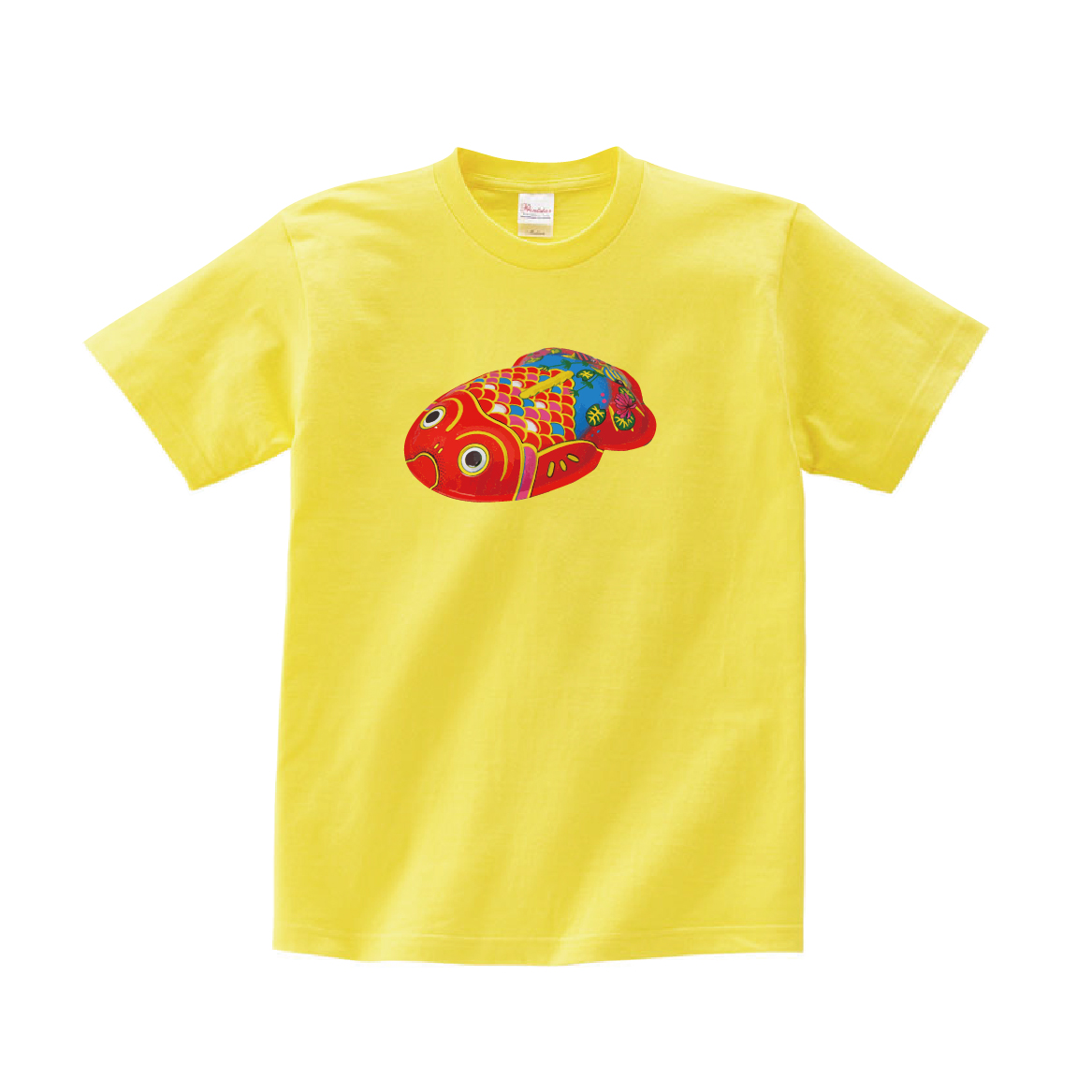 Short-sleeved t-shirt featuring a goldfish tin toy from the Showa era. Retro and cute character design for matching outfits. Original design for men, women, and kids. [5.6 oz. Heavyweight 100% Cotton, Rich Colors, Durable, Comfortable, Natural Materials] Cotton Shirt in White and Black. Outdoor wear available.