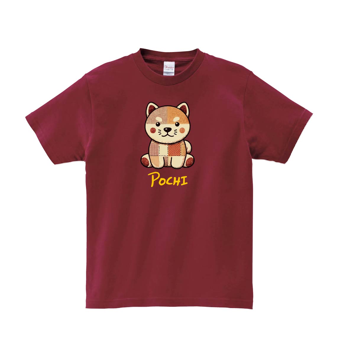 パッチワーク柴犬のポチのイラストデザインTシャツです。※画像ははめ込み画像となり、実際とは多少異なりますので予めご了承ください。 ※サイズ表をよくご確認の上ご購入ください。 ※受注生産となるため、返品、交換はご遠慮ください。