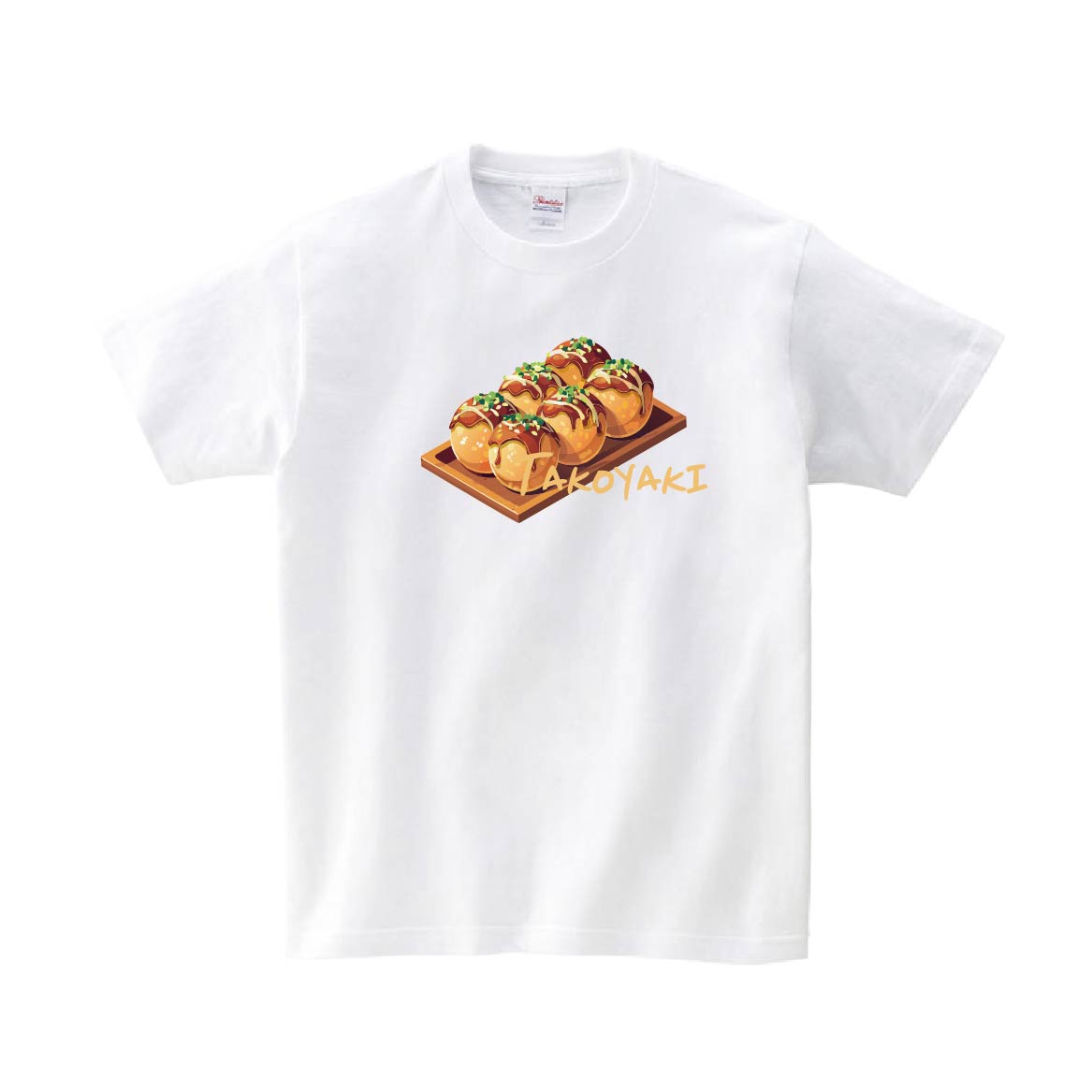 タコ焼きのリアルテイストのイラストデザインTシャツです。※画像ははめ込み画像となり、実際とは多少異なりますので予めご了承ください。 ※サイズ表をよくご確認の上ご購入ください。 ※受注生産となるため、返品、交換はご遠慮ください。