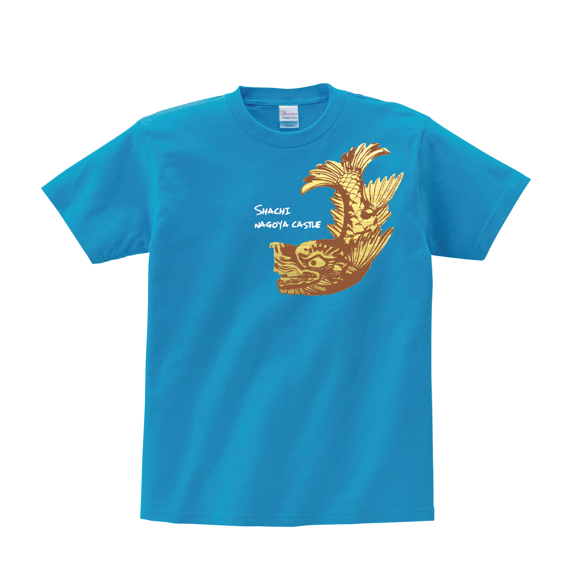 有名な名古屋城の金の鯱しゃちほこのTシャツです。※画像ははめ込み画像となり、実際とは多少異なりますので予めご了承ください。 ※サイズ表をよくご確認の上ご購入ください。 ※受注生産となるため、返品、交換はご遠慮ください。