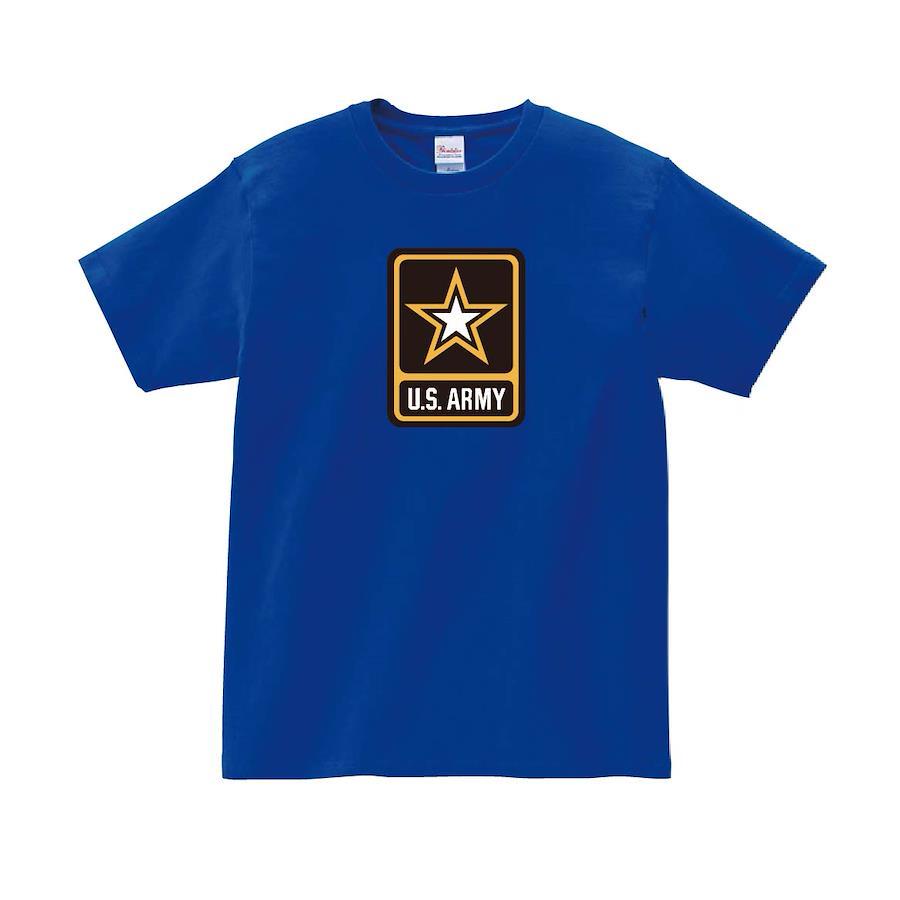 アメリカ陸軍、ミリタリースターのエンブレムデザインTシャツです。※画像ははめ込み画像となり、実際とは多少異なりますので予めご了承ください。 ※サイズ表をよくご確認の上ご購入ください。 ※受注生産となるため、返品、交換はご遠慮ください。