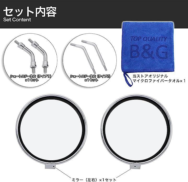 愛車のドレスアップに最適です。正ネジ M10 の汎用 ショートミラー ショートステー(2タイプ入り) 左右セットとオリジナルマイクロファイバータオルセットになります。