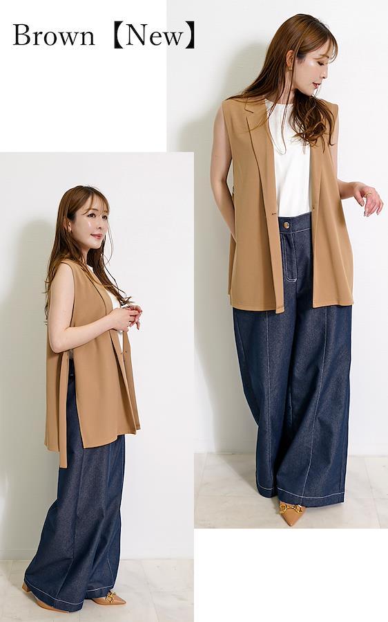 梨地ポンチカットソー素材を使用したサイドベルトカットジレです。