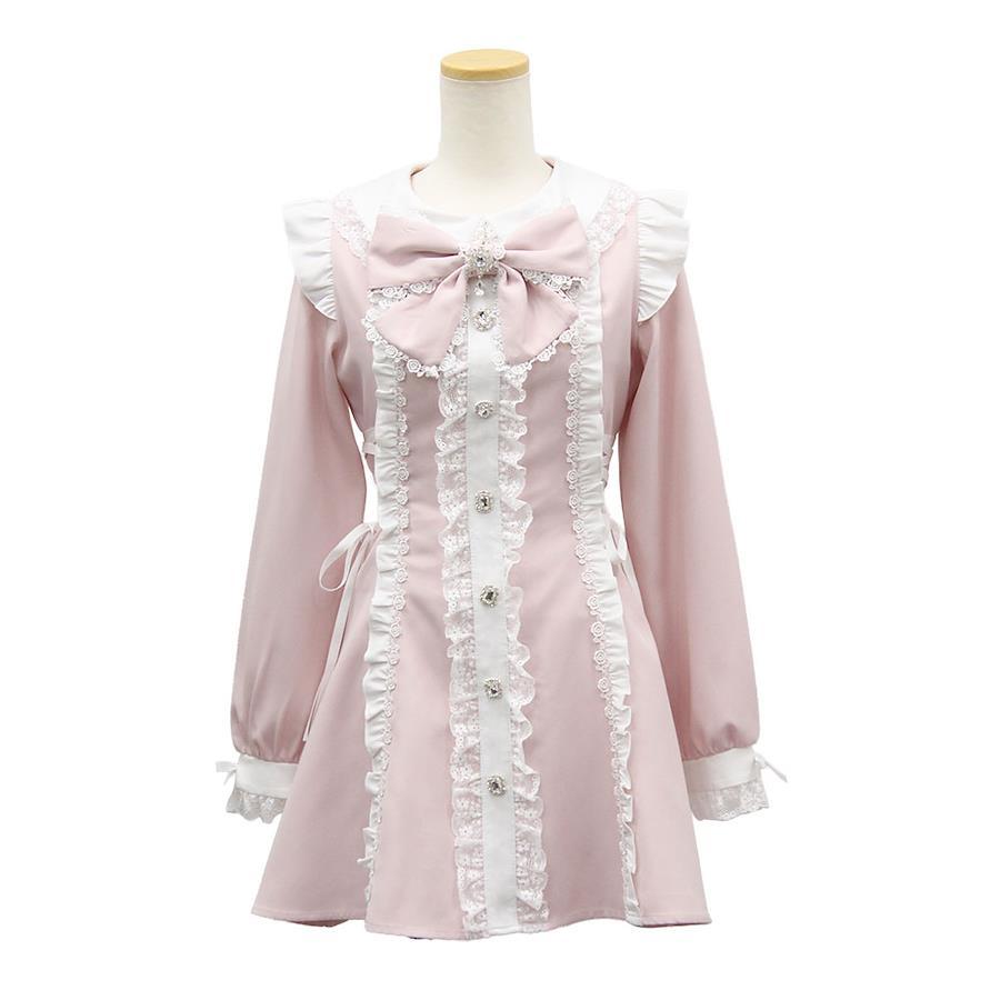 大きいリボンにバラレースとかわいいキラキラビジューが付いています。