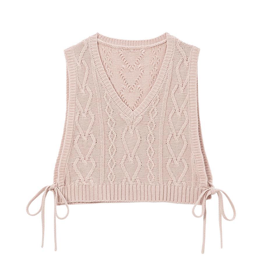 トレンド性たっぷりなサイドリボンショートニットベストのご紹介。