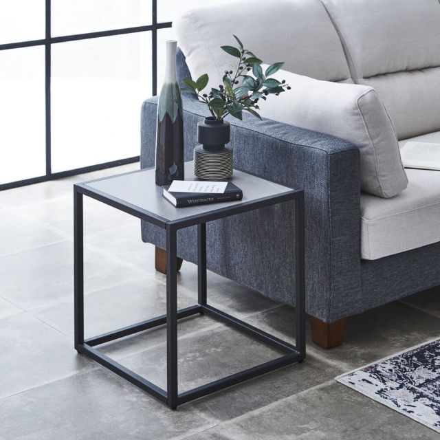 Side Table, 2 Colors: White & Gray, W45 x D45 x H50cm, Ceramic Top, 45cm Wide, Black Steel Legs, Nightstand, Coffee Table, Mini Table, Bedside Table, Sofa Side Table, Modern, Stylish.