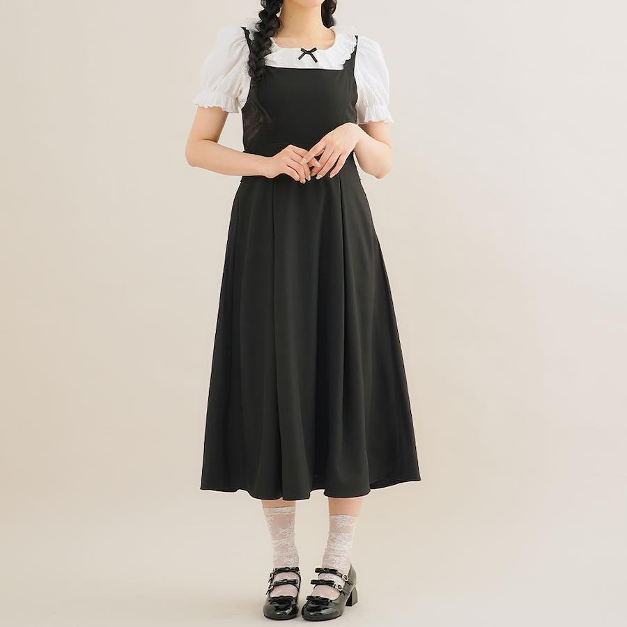 【デザイン】フィット感のある綺麗なシルエットと自然なドレープ感裾のフレア分量をたっぷりにしたことで、女性らしいスタイルに仕上がります。最大のポイントは高めのウエスト切り替えと、ローウエストから始まるフレア切り替え♪お腹まわりにボリュームが来ない設計で、着るだけで細見え効果抜群。肩紐も細すぎない太さで、肩周りもほっそり見せてくれます。前はあえてシンプルに、どんなトップスとも合わせられるデザインで後ろの大きめリボンが存在感をUP◎ご自身で結んでいただく仕様なので、リボンの大きさをお好みで調整できるのも嬉しいポイントです。