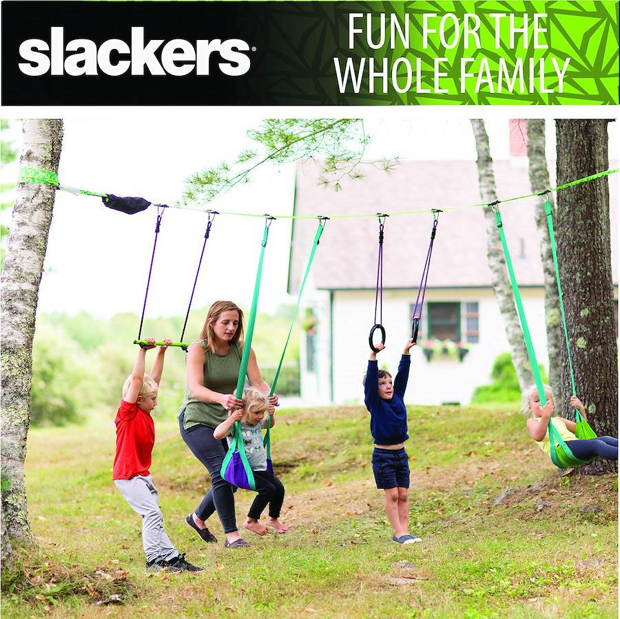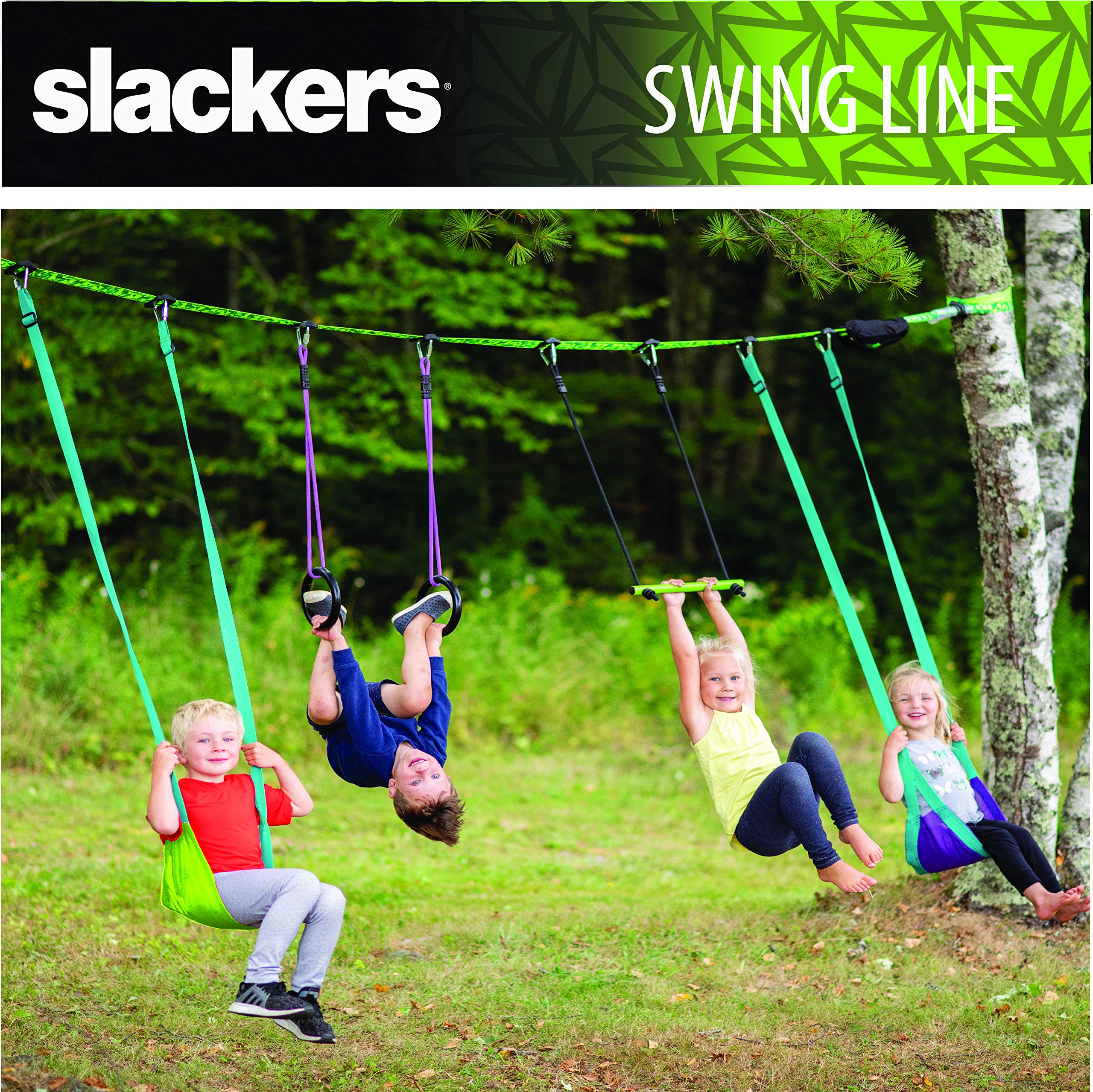 Slackersはコロラド州に拠点を置く会社で、子供たちがアクティブになり、健康を維持できるように促すことを目標としています。 ジムリングで強度をテストしたり、クラシックスイングシートで新たな高さに急上昇したり、モンキーバーでぶらぶらしたりする場合でも、Swinglineはお子様の全体的な発達を助けながら強度とバランスを改善する優れたオプションです。