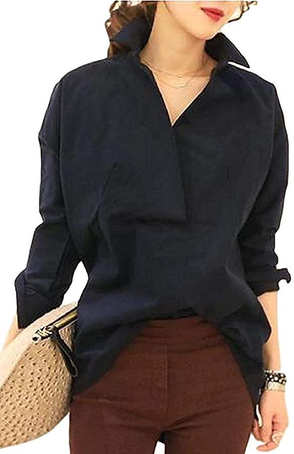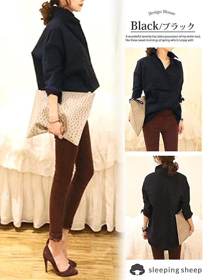sleeping sheep office casual V neck long length long sleeve blouse ladies shirt simple plain tunic