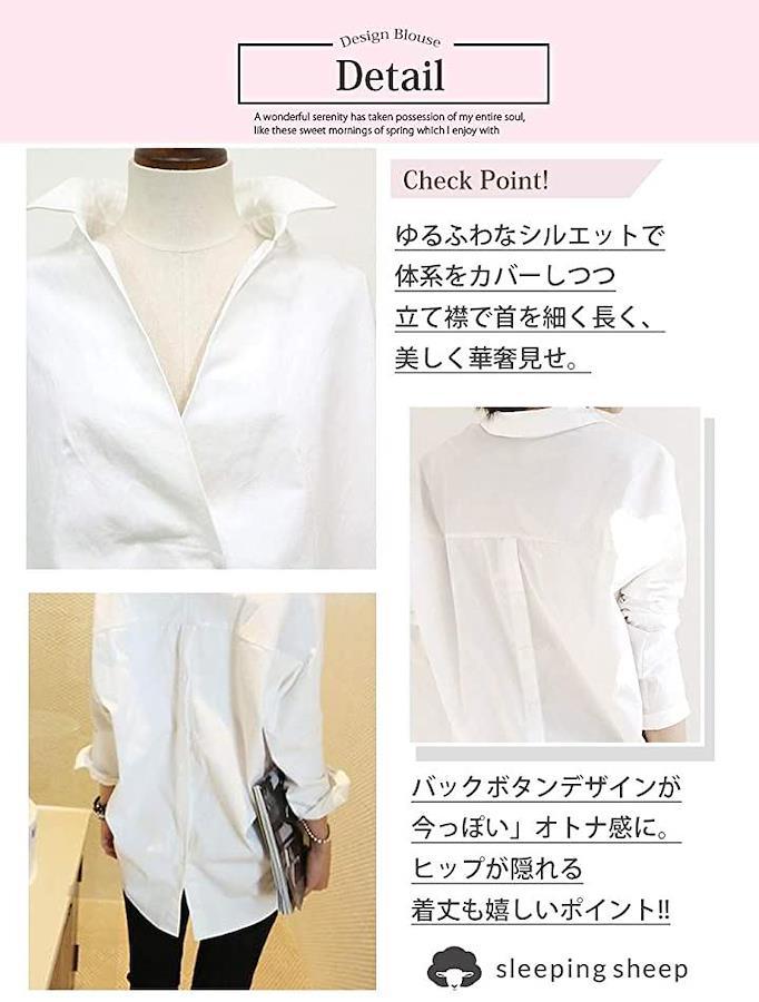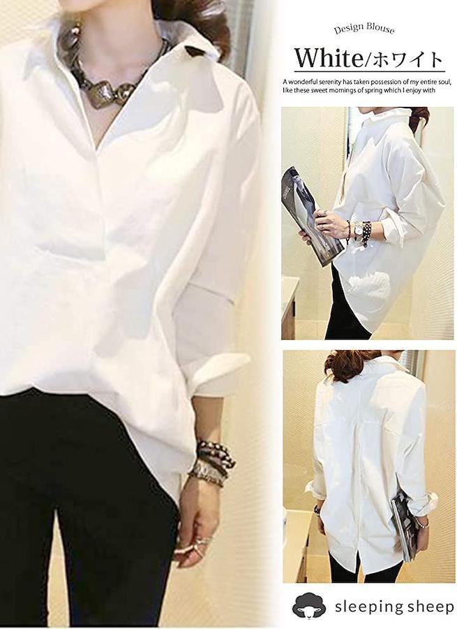 ゆるふわなシルエットで女性らしく着こなせるロング丈のゆったり白シャツ。