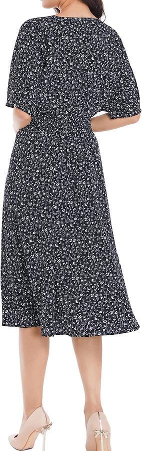 やわらかなドレープデザインで大人の魅力を引き出すミモレ丈カシュクールワンピースです。