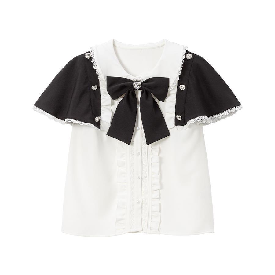 ハートのビジュー釦があしらわれたケープブラウスが登場♪