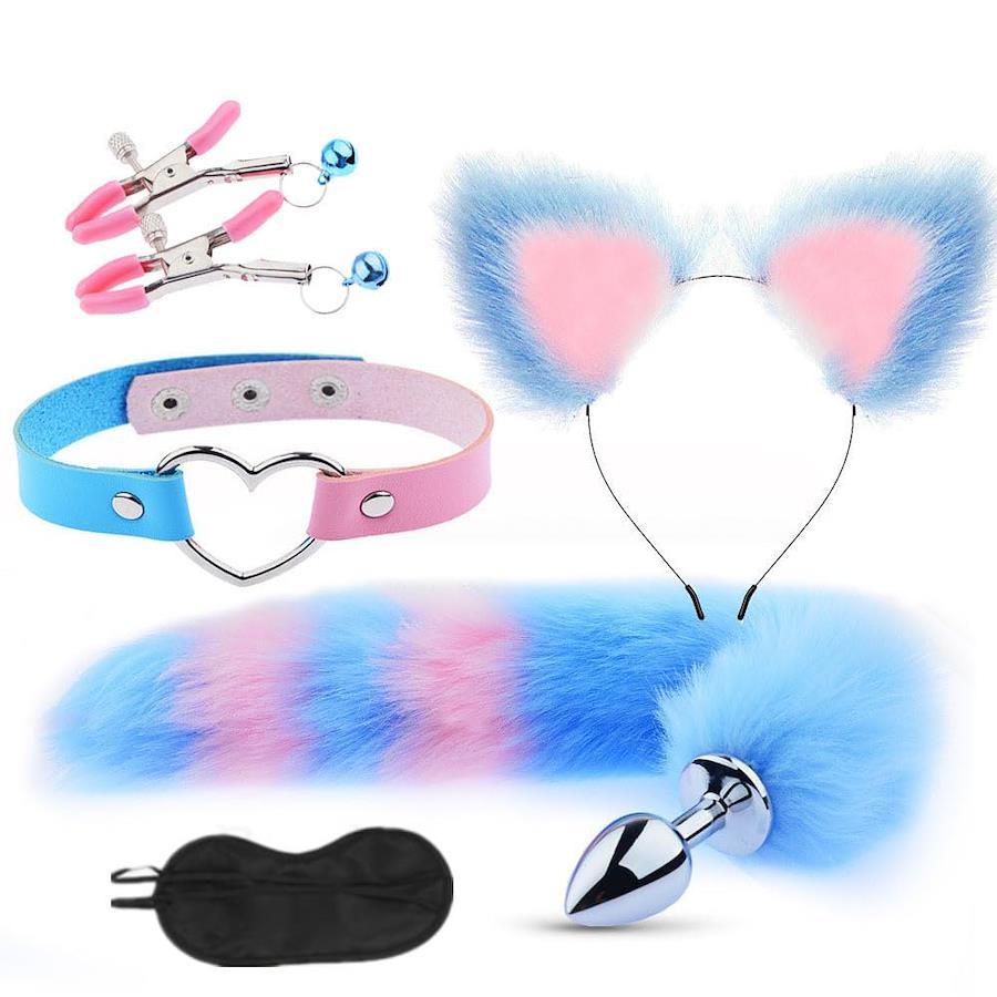 SM Goods Anal Plug, Tail, Anal Toy, Fox Ear Headband, Nipple Clips, Collar, Cute Heart Shape, Anal Training, Beginner, Anal Expansion, Anal Training, Fox, Cat, Animal Ears, 5-Piece Set with Cosplay Eye Mask (Ska)
