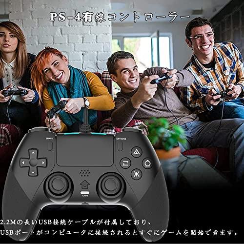 【2025新登場&PS-4コントローラー】本ゲームパッドは斬新なデザインとユニークな外観を持っています。有線ゲームパッドなので、電池切れを気にせず、 2.2Mの長いUSB接続ケーブルが付属しており、USBポートがコンピュータに接続されるとすぐにゲームを開始できます。安定された有線接続と強力な信号伝送で、無線コントローラの電池切れ・スリープモードの、煩わしさ・突然のBluetooth接続不良などのトラブルから貴方を開放し、快適なゲーム環境をご提供いたします! 【背面ボタン搭載&連射機能】連射コントローラーの後ろにM1とM2二つのボタンがあり、一つのプログラムに多個の動作編集ができます。アクションゲーム、ミニゲームなどの様々なゲームに必須の技「コンボ技」をこのコントローラーならストレスフリーで楽に放つことができます。マクロ設定については、詳細については日本説明を参照してください。新しいTURBOバースト機能、ゲームはより良いゲーム体験をもたらすことができます。ご注意:FF14/FPS/TPSとのゲームにはあまり向いていません。 【高精度ボタン】PS-4ハンドルの基本キーは耐摩耗性の分子素材でできており、1万回のキー押下テストが可能です。誤入力の少ない十字型キーを採用しており、優れたデュアルアナログジョイスティックデザインで最適化されています。軽い力で操作できるようになり、滑らかに動き、より反応の良い、感触の良いフィーリングを実現します。ボタンを押したら強力なバネによって戻ってくる、精密なボタン配置で、良い操作性があります。共有ボタンを使用すると、エキサイティングなゲームクリップをいつでもソーシャルネットワークで共有できます。超高精度ボタンとジョイスティックでゲームを自由に体験できます。 【人間工学&リアルなゲーム体験】PS-4 有線 コントローラには振動機能が備わっていますので、あなたは没入感あふれるものになり、本物のゲーム体験をもたらします。6軸センサー搭載したコントローラーで、臨場感いっぱい溢れます。最新の人間工学に基づいた設計を採用しています、グリップの質感は指にフィットします。コントローラー自体は滑り防止シリコンを付いています、手に汗を握る場合にも落ちを防止します。軽くて握りやすい、長時間でも疲れにくく快適にゲームをプレイできます。注:本ゲームパッド、サウンド機能、ヘッドセット機能、タッチ機能はありません。 【広範囲のシステム互換性】PS-3、PS-4 /Slim/Pro、Windows(7/8/10)に対応しています。 最新のPS-4システムソフトウェアバージョンにも適用されます。STEAMなどの一般的なコントローラー設定を持つメインストリームPCゲームプラットフォームでの使用をサポートしています。コントローラーの背面に2mmの小さな穴(リセットキー)があります。針や小さなもので押してください、接続できない問題が解決します。弊社の製品についてはアフターサービスが付いており、破損または故障した製品が届いた場合、電子メールアドレスまでご連絡ください。弊社は一営業日以内対応させていただきます。