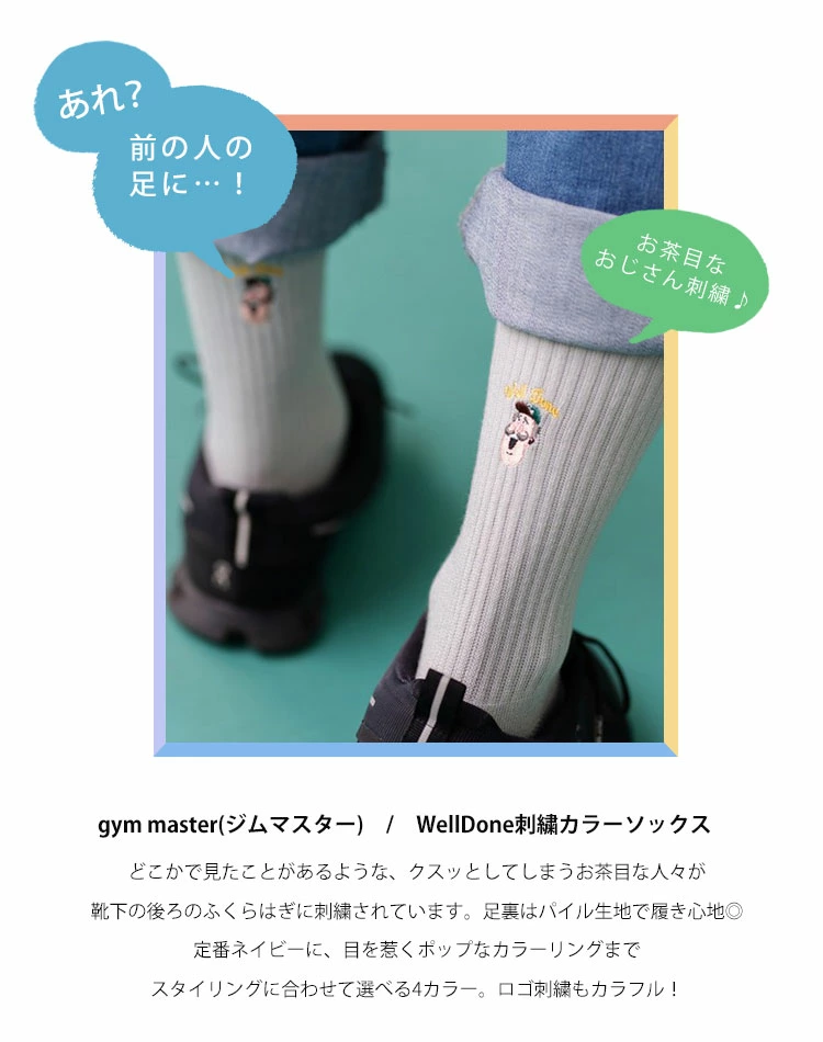 ■関連キーワード靴下 メンズ レディース gym master ジムマスター クルーソックス クルー丈 裏パイル 23 24 25 26 27 cm くつ下 くつした リブソックス ブランド おしゃれ かわいい 柄 シンプル ワンポイント ロゴ 刺繍 個性的 おもしろ 面白い ベージュ グレー ネイビー イエロー 黄色 紺 WellDone刺繍カラーソックス アウトドア フェス 男の子 女の子 カラフル 丈夫 膝下 誕生日 クリスマス 父の日 プレゼント プチ ミニ ギフト 10歳 10代 20代 30代 40代 50代 60代 70代 80代 小学生 中学生 高校生 大学生 通学 通勤 子ども 子供 こども キッズ ジュニア 息子 娘 孫 女性 女子 ガールズ girl 男性 男子 ボーイズ boy 父 母 おかあさん おとうさん パパ ママ シニア おじいちゃん おばあちゃん お爺ちゃん お婆ちゃん 祖父 祖母 じいじ ばあば バースデー 誕生日 プレゼント プチ ミニ ギフト お祝い お返し イベント 母の日 父の日 クリスマス クリスマスプレゼント バレンタイン チョコ以外 ホワイトデー オシャレ お洒落 可愛い カワイイ シンプル かっこいい カッコいい カッコイイ