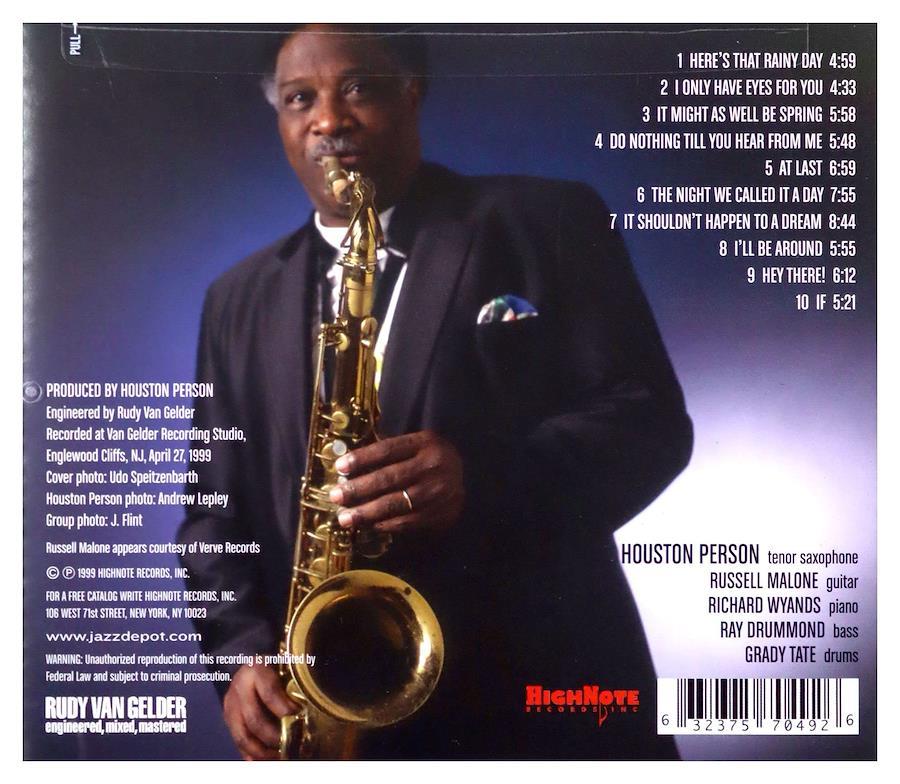 ソウルフルなプレイで定評のヒューストン・パーソンのソフトでムーディーな演奏を味わう一枚。ベストメンバーでスタンダードを含む10曲をじっくりと。(jazzyellより)■MemberHouston Person(ts),Russell Malone(g),Richard Wyands(p),Ray Drummond(b),Grady Tate(ds)Recorded at Van Gelder Recording Studio,Englewood Cliffs,NJ,April 27,1999