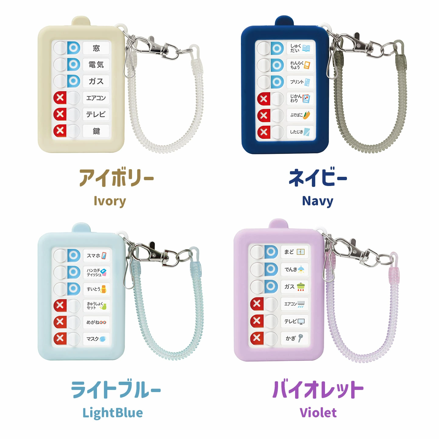 【うっかりチェッカー パスケース付き】ついつい約束・提出忘れてしまうお子さまをサポートする『うかサポ』シリーズから、忘れ物チェッカーとパス・キーケースがひとつになった便利なチェッカーが登場!「いってきます!」の前に、簡単チェックで忘れ物を防止し、そのまま鍵閉めまでをサポート。大事な定期や鍵はウラ面のパスケースにまとめれば紛失も防止してくれます。伸びるカールコード付きで玄関や駅での取り出しもスムーズ♪お子様はもちろん、大人の忘れ物防止・不安対策にも◎