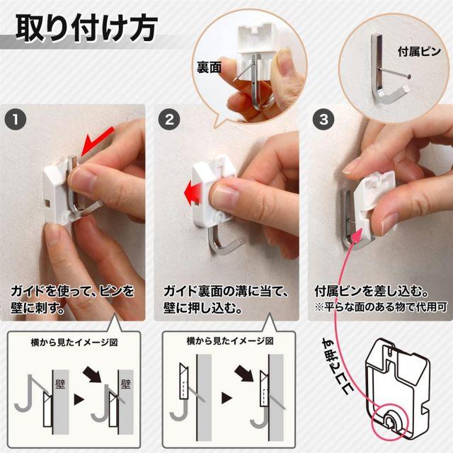 スタイル:カジュアル◆商品名:SORO:Uステンレスピンフック3個入(耐荷重2kg)18-8ステンレス製取り付けガイド付