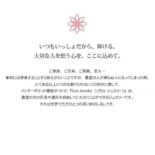 ソウルジュエリーは、大切な方のご遺骨や遺灰を、想いと共に納めることのできる、インナーポケット機能付きのジュエリーです。手元供養のトップブランドであるSoulJewelry(ソウルジュエリー)だから実現できる、多くの人や様々なライフスタイルにマッチする遺骨アクセサリーです。「ソウルジュエリー ウフ ミニョン」は、シルバー素材の遺骨ジュエリー。幅広い年齢の方に手に取っていただけるベーシックなデザイン。フォーマルからカジュアルまで、どんな服装にも合わせやすいデザインなので、いつも身につけることができます。ペンダントトップの裏側にネジ構造を設けており、そこからご遺骨をお納め頂けます。トップサイズ:高さ13mm×幅7mm×奥行7.5mm 納骨部口径:3mm / チェーン長さ:最大40cm(アジャスターカン付) / 素材:シルバー925 / 内容量:米粒半粒程度 / 付属品:専用ケース、説明書、納骨キット