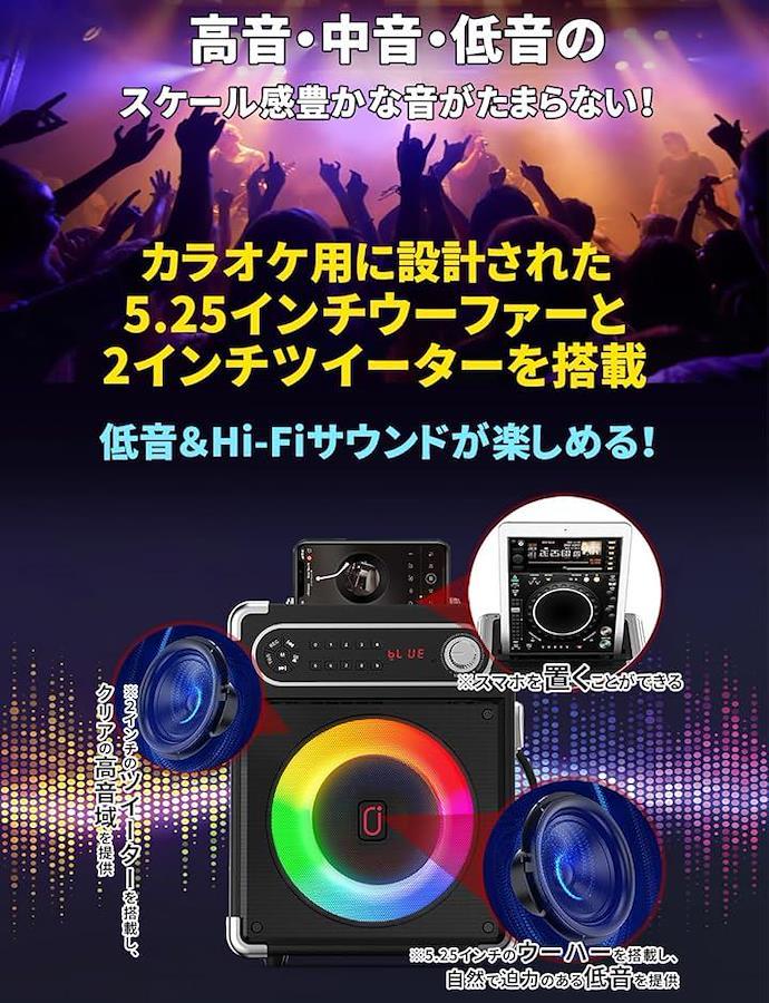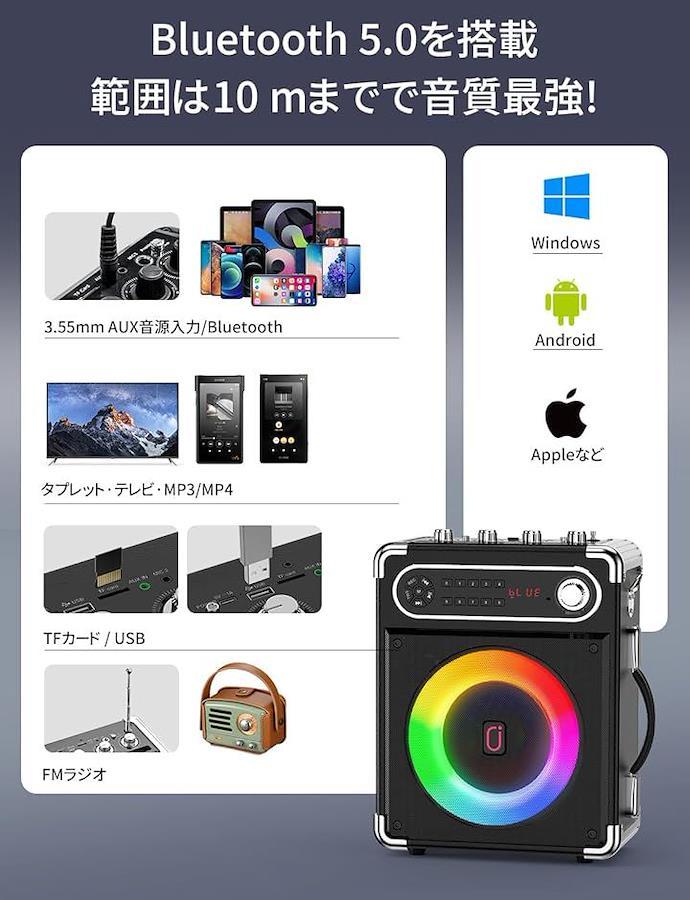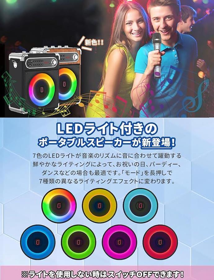RGB ライト付き、ポータブルスピーカー重量は2.96KGです。