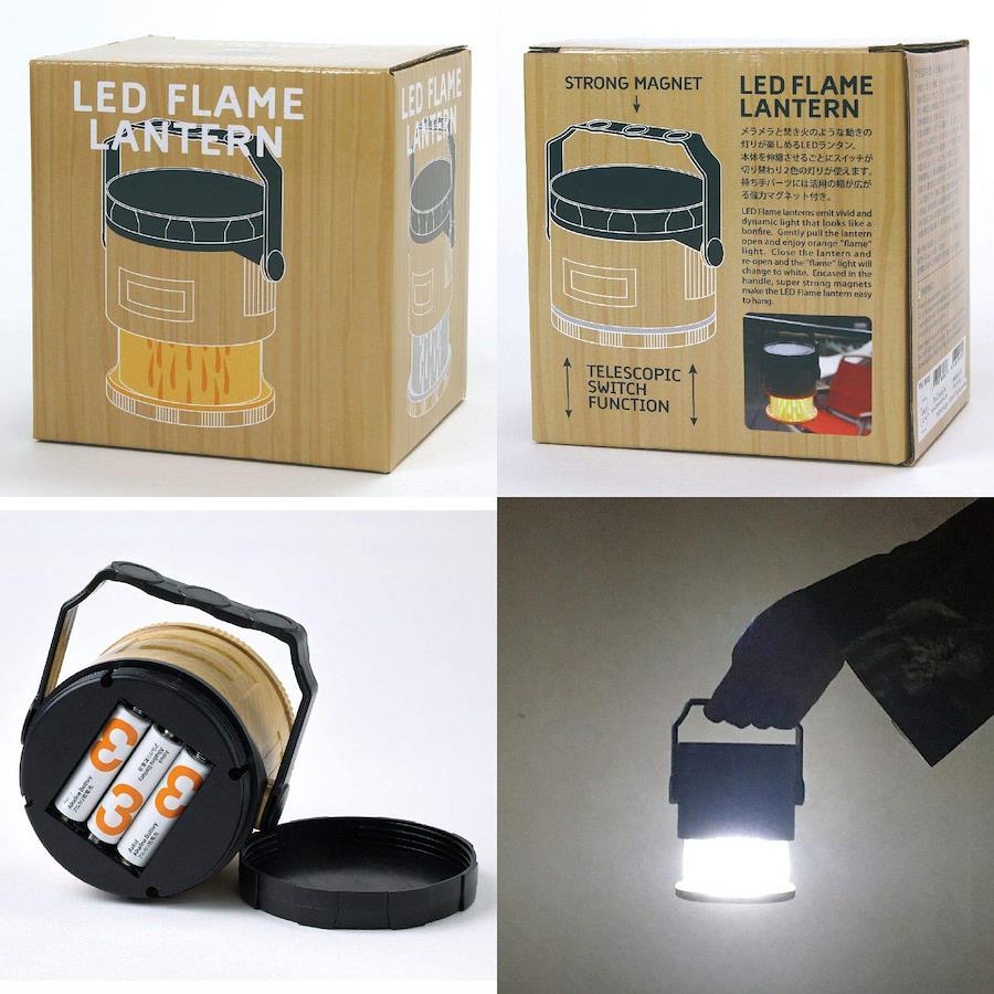 ・焚き火のような灯りを楽しめるLEDランタン。・2色のLEDが仕様でき、持ち手の上部にマグネット付きなので、ポールなどの金属部へくっつけることができ便利!・本体を上にひっぱるたびにライトの光り方が切り替わります。(1回目は焚き火のようなメラメラライト、2回目は白昼色の明るいライト)・ハンドルを上にして置くとランタン風、下にして置くと焚き火風に楽しめます。焚き火のような灯りのLEDランタン2色のLEDが仕様でき、持ち手の上部にマグネット付きなので、ポールなどの金属部へくっつけることができます本体を上にひっぱるたびにライトの光り方が切り替わりますサイズ(約): 幅10cm 奥行9cm 高さ11.5cm重量: 160g素材: 本体: ABS樹脂 レンジカバー: ポリスチレン生産国: 中国点灯時: 15cm単3電池3本使用(電池は付属しません)