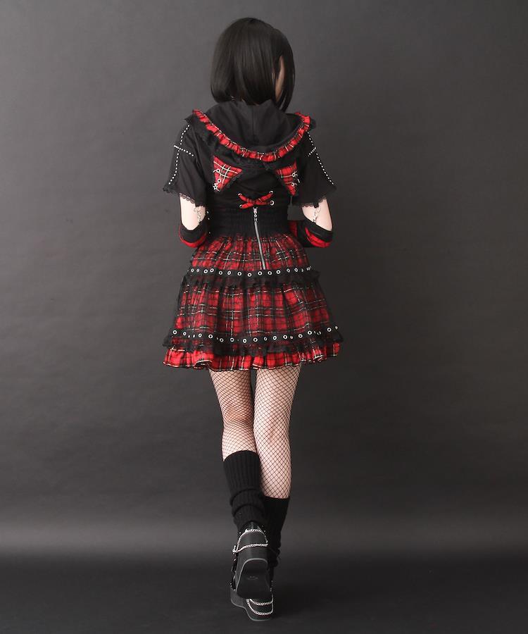 ゴシック×サブカルを融合した十字架クモレースチェックティアード風スカートの登場です。【デザイン】ウエスト部分伸縮性のあるデニム生地を採用し、フィット感抜群&動きやすさ◎ウエスト中央には十字架モチーフのビジューを3つ並べ、華やかながらも暗めのトーンで引き締めファスナーの引き手にはキラキラ光るドクロチャームをあしらい、スナップをひとつ上の個性派にポイントに効かせた配色ステッチで、細部にもこだわりを両サイドにはレースアップデザインを施し、コーデに合わせてアジャスト可能メタルバックル付きのベルトを2本垂らして、レイヤード感&サブカルテイストを演出スカート部分ベースにあしらったチェック生地の上に、繊細なクモの巣モチーフレースを重ねてアクセント十字架柄のレースフリルを二段に配し、ボリュームと陰影をプラスフリル上部にはシルバーのハトメテープをあしらい、ヴィンテージライクかつハードな印象に【素材】しっかりとした素材になっています。ウエスト後ゴムとファスナーで着脱可能【コーディネート】個性的なディテールを詰め込んだ一着で、コーディネートにひとさじのダークロマンティックをプラス。裾にかけて広がるティアード風シルエットが、歩くたびに揺れてドラマティック。ゴスロリ、パンク、サブカル地雷まで、幅広いスタイルにマッチする万能アイテムです。《透け感》なし 《生地の厚さ》普通 《裏地》なし《生産国》中国