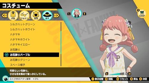 通常1-5営業日で発送≪新品・未開封品≫:「SPY×FAMILY」が初の家庭用ゲーム化!アーニャになって「SPY×FAMILY」の世界を満喫しようイーデン校の課題で絵日記を書くことになったアーニャ。 平日は学校に通い、お休みの日は海や水族館などいろんな場所へ家族でおでかけして、絵日記に書く題材を集めていきましょう。 服・アクセサリー・髪型は合計80種類以上!めいっぱいオシャレしておでかけしましょう。「SPY×FAMILY」らしいちょっとおかしな日常を体験できるミニゲームも15種以上収録。アーニャの超能力を使えば相手のトランプの手札を読み取ることも!?一緒に遊んだり、勉強を教えてもらったり、お馴染みの登場人物たちと過ごすかけがえのない時間。はたしてアーニャは、絵日記を完成させることができるでしょうか?