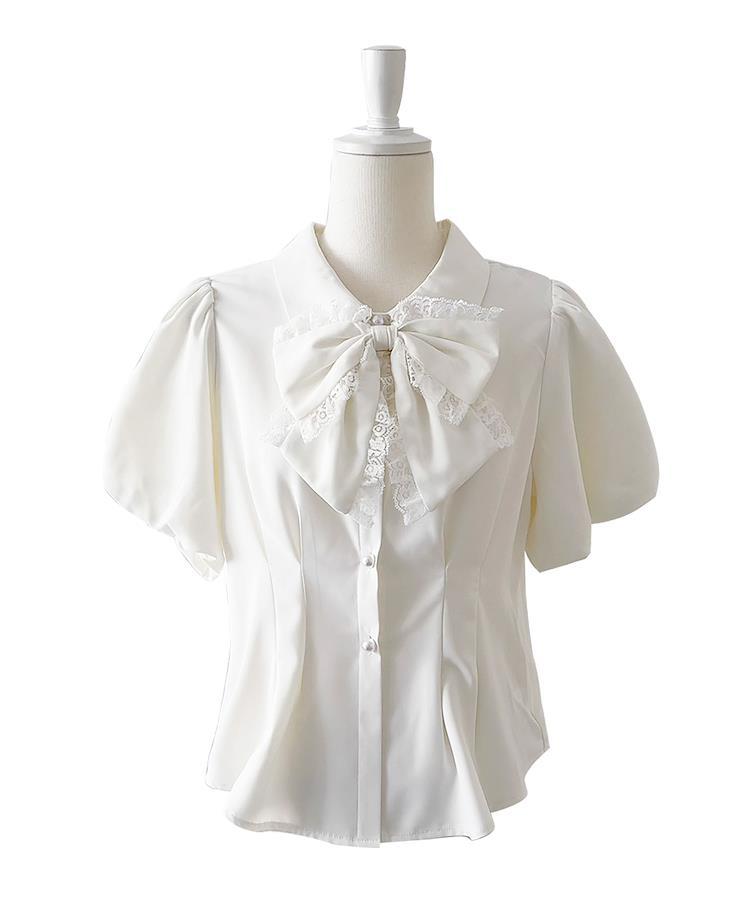 胸元のリボンがかわいい着回し力抜群のパフスリーブブラウス登場!