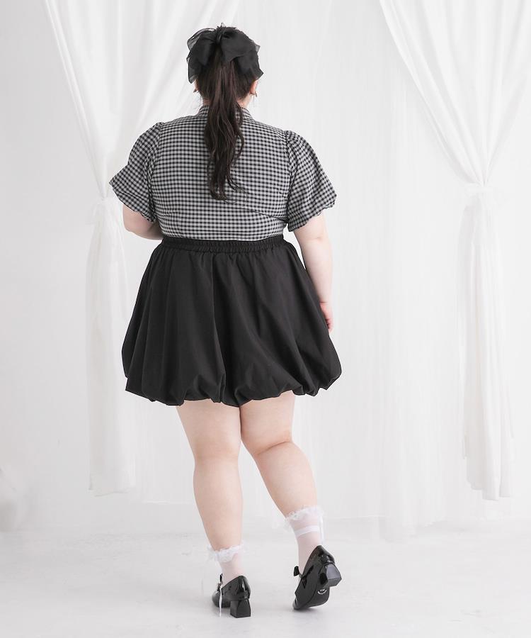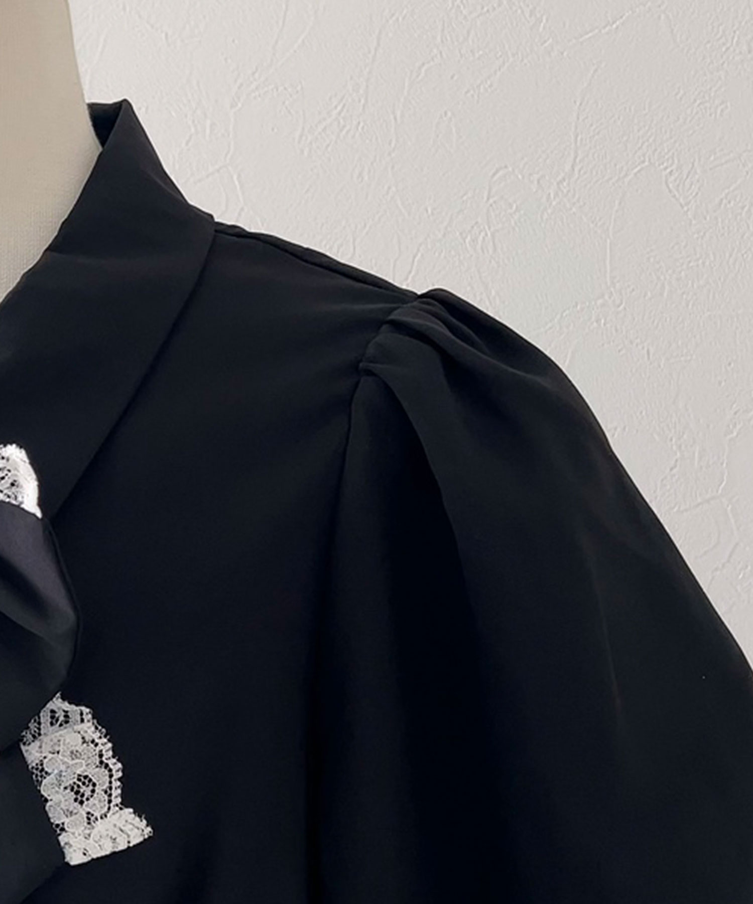 胸元のフリルリボンとふんわりパフスリーブが胸下界隈にもピッタリ!