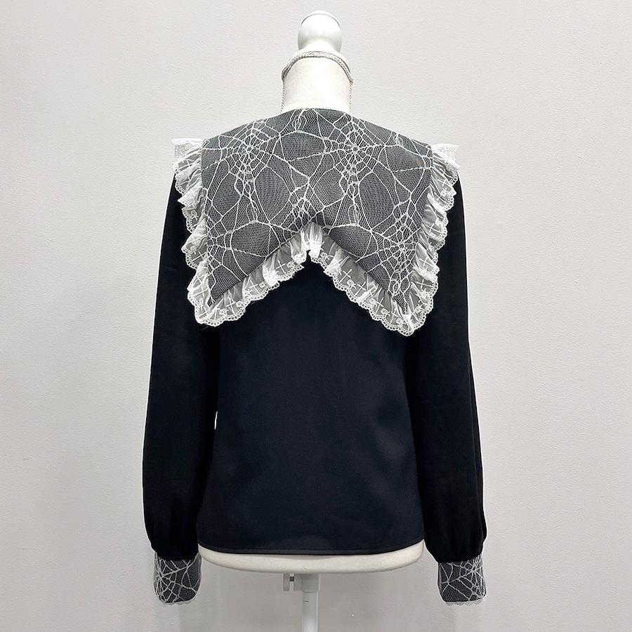カフス部分も同じく蜘蛛柄レース重ねています。