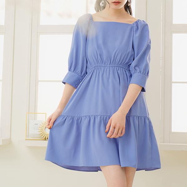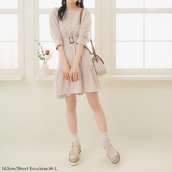 きゅっとウエストをしめれるベルトとスクエアネックラインがスタイルアップ効果を後押し。