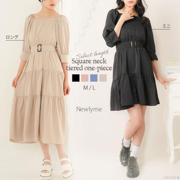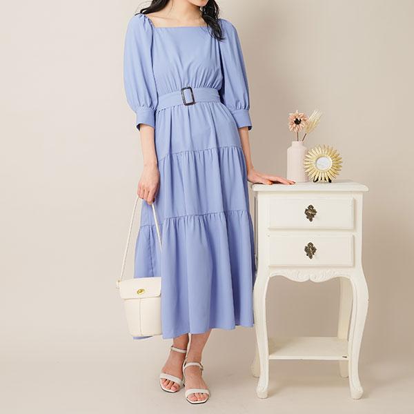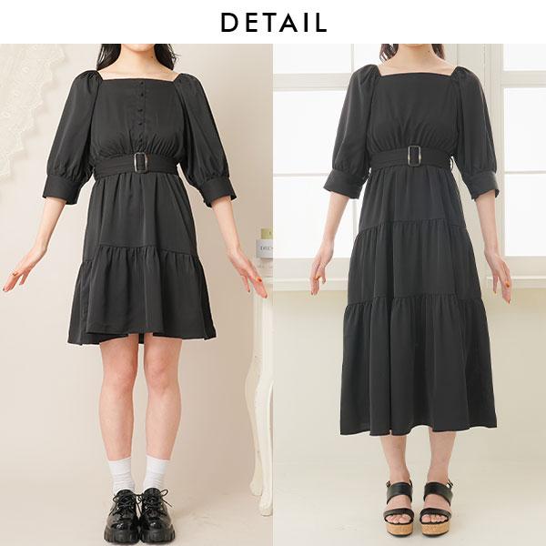 きゅっとウエストをしめれるベルトとスクエアネックラインがスタイルアップ効果を後押し。