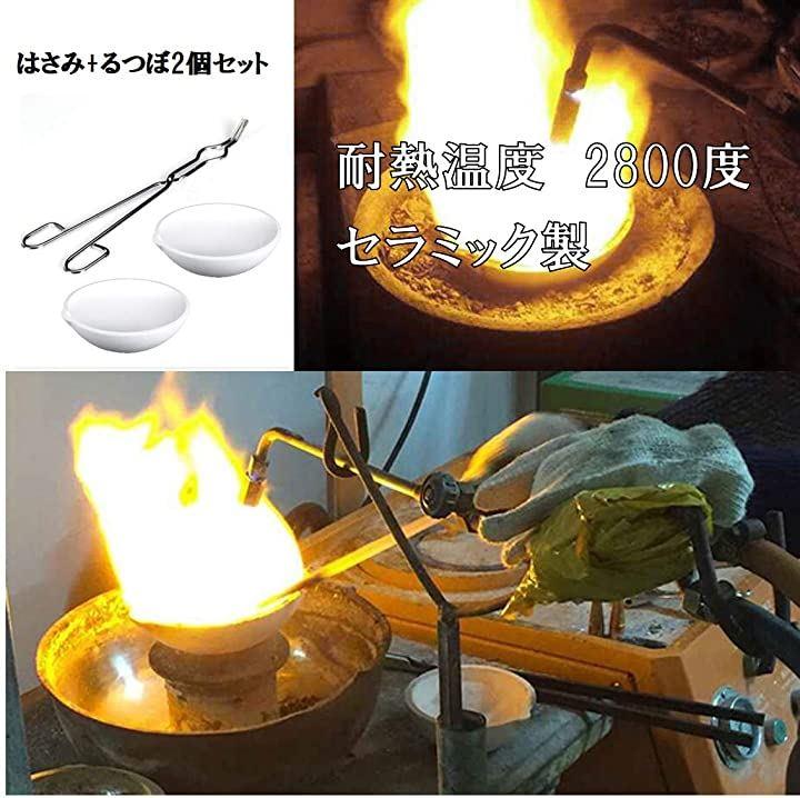 はさみ+るつぼ2個セットセラミック耐熱皿ボウル2800度金銀細工彫金坩堝鍛金用(はさみ+るつぼ2個(直径6cm))