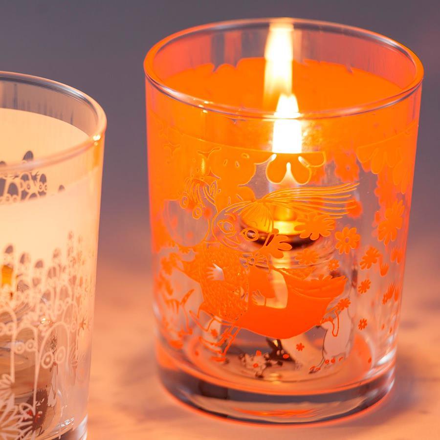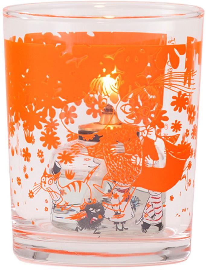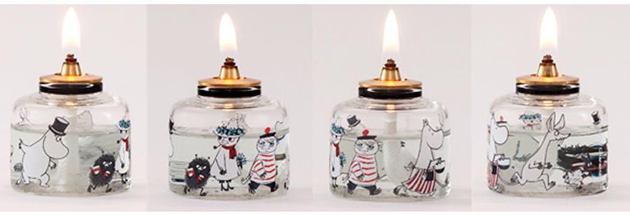 可愛らしいキャラクターたちをグラスとオイルタンクにプリント。炎を灯すことでグラスのイラストが照らされテーブル面に影が踊ります。元気な女の子のキャラクターを、色鮮やかな花吹雪で表現しました。花吹雪の中をミムラねえさんとスノークのおじょうさんが仲良く走り抜けます。その足元には?オイルは別売です。サイズ:径69×H85mm燃焼時間:約6時間付属:専用オイルタンクおすすめオイル:スターパラフィンオイル(商品番号STA-7007/STA-12876)、その他純度の高いパラフィンオイル推奨