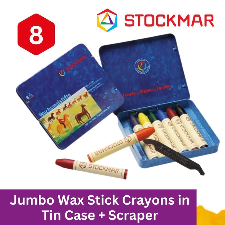 シュトックマー社(ドイツ)。高い透明感と美しい発色の蜜ろうクレヨンは、スティックタイプとブロックタイプがあります。何色もの重ね塗りから微妙な深みのある中間色をつくれます。重ね塗りをしてもべたつかず、色が濁ることはありません。色素(ピグメント)は食品用に認可されたものを採用。人体に無害で、溶け出さず、熱の影響を受けず、定着性が高く、退色しないことが条件です。また、重金属などの含有量に関してはヨーロッパの玩具に対する基準よりもはるかに厳しい、食品用の許容基準を独自に定めて管理しています。
