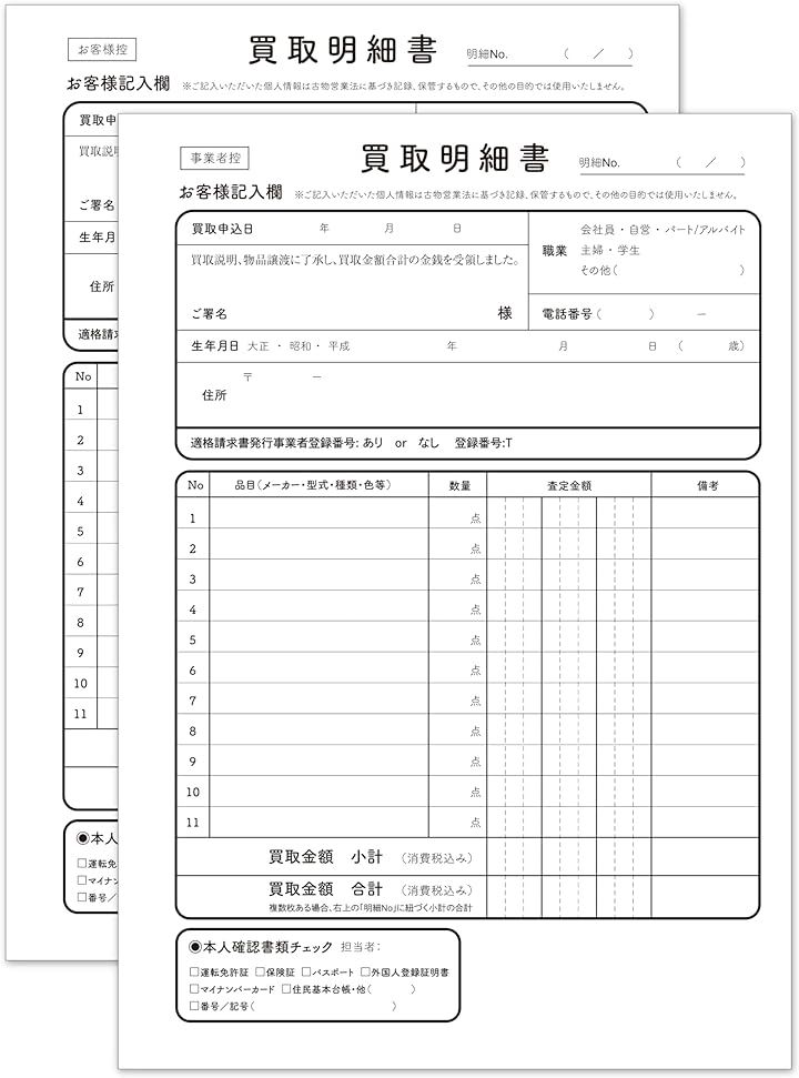ノーカーボン 複写式:お客様控えが簡単に作成できます