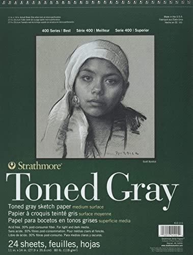 A gray toned sketch paper with a medium surface ideal for mastering light and dark media techniques. This package contains one 11x14 inch sketch pad with 24 sheets of 80lb acid free sketch papers. Made in USA.
